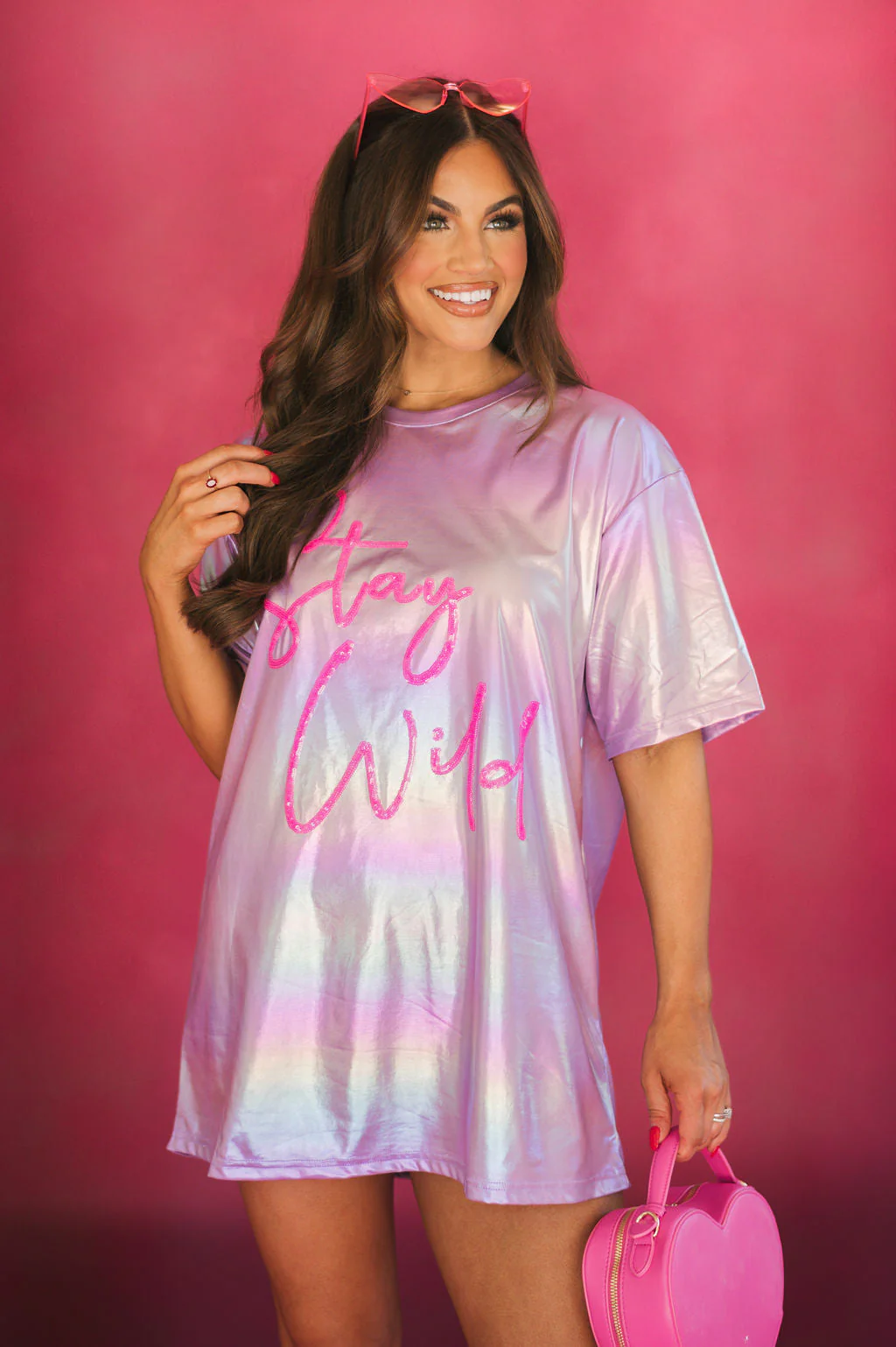 "Stay Wild" Hologram Tunic-Lavender